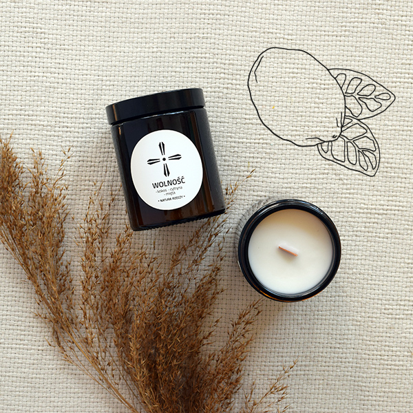 Zapachowa świeca sojowa z serii Intense, bazująca na naturalnych olejkach eterycznych z dodatkiem najwyższej jakości naturalnych kompozycji zapachowych; w całości wykonana z ekologicznego wosku sojowego. Świeca w słoiczku szklanym, zamykanym, nadającym się do recyklingu. Apteczno – zielarski charakter szkła sprawia że idealnie nadaje się dla fanów naturalnych produktów, a także do nowoczesnych wnętrz.  Moc zapachu podwyższona, wyraźna i intensywna, dobrze sprawdzi się w pomieszczeniach o średnim i dużym metrażu, do wnętrz otwartych a także na zewnątrz. Unikatowe drewniane knoty dają migotliwy, przeskakujący płomień, delikatnie wytapiający wosk i uwalniający olejki eteryczne.